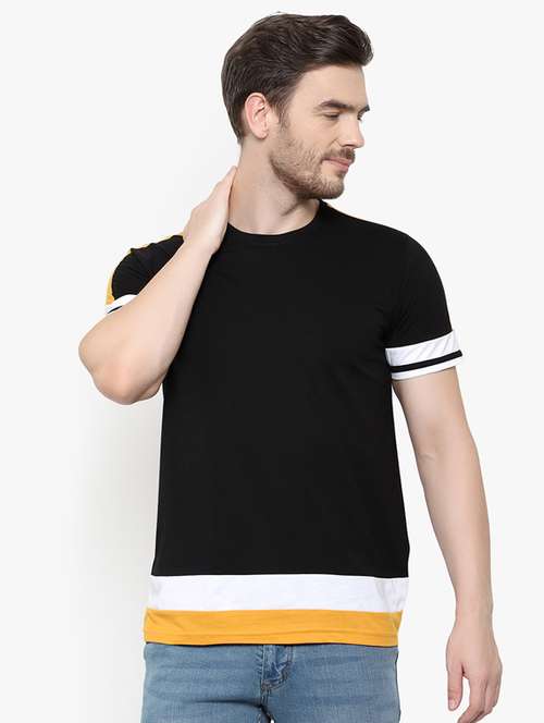 black color block taped t-shirt