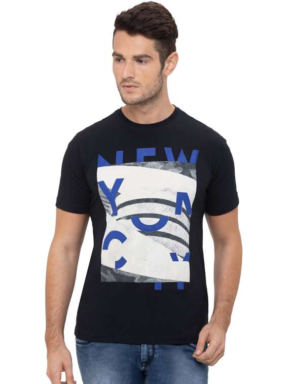- » navy blue front print t-shirt