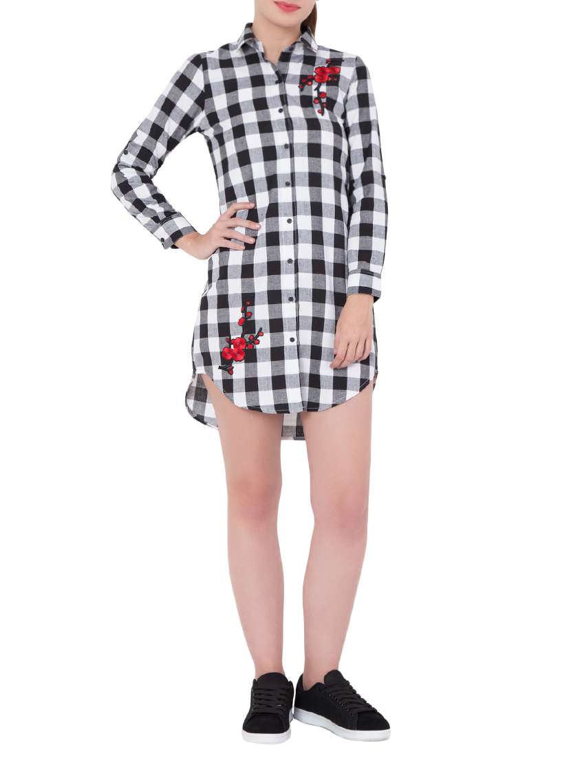 - » floral patch checkered shirt dress