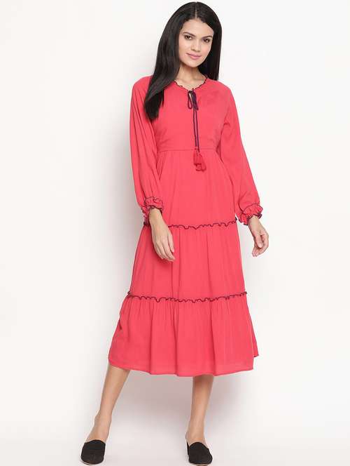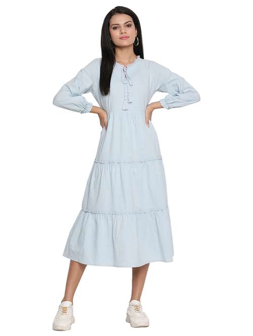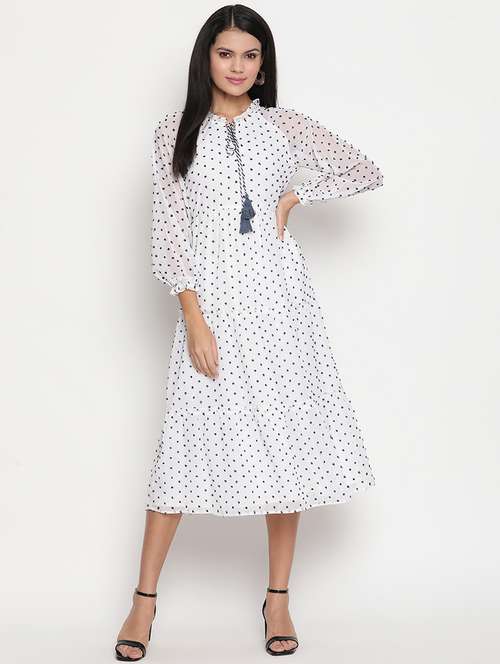 - Dress up in a soothing pattern and don this dress made of cotton material.