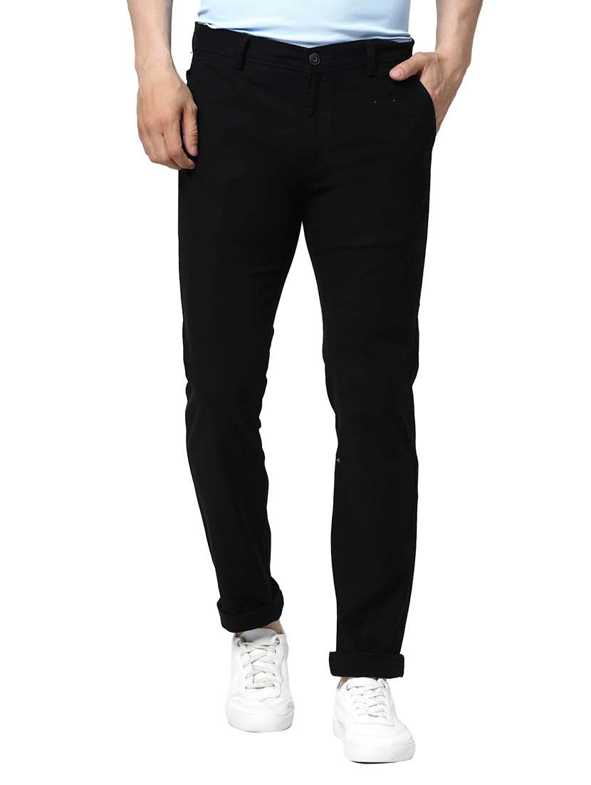 - » black solid flat front casual trouser