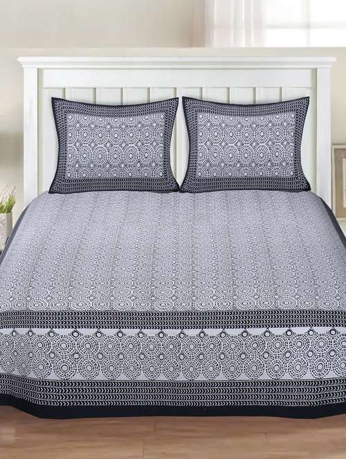 cotton jaipuri printed king size double bedsheet with 2 pillow cover