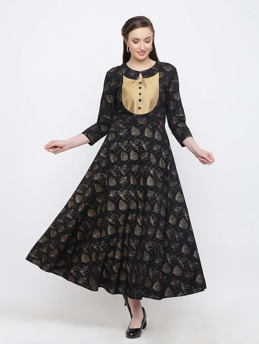 gold print flared kurta
