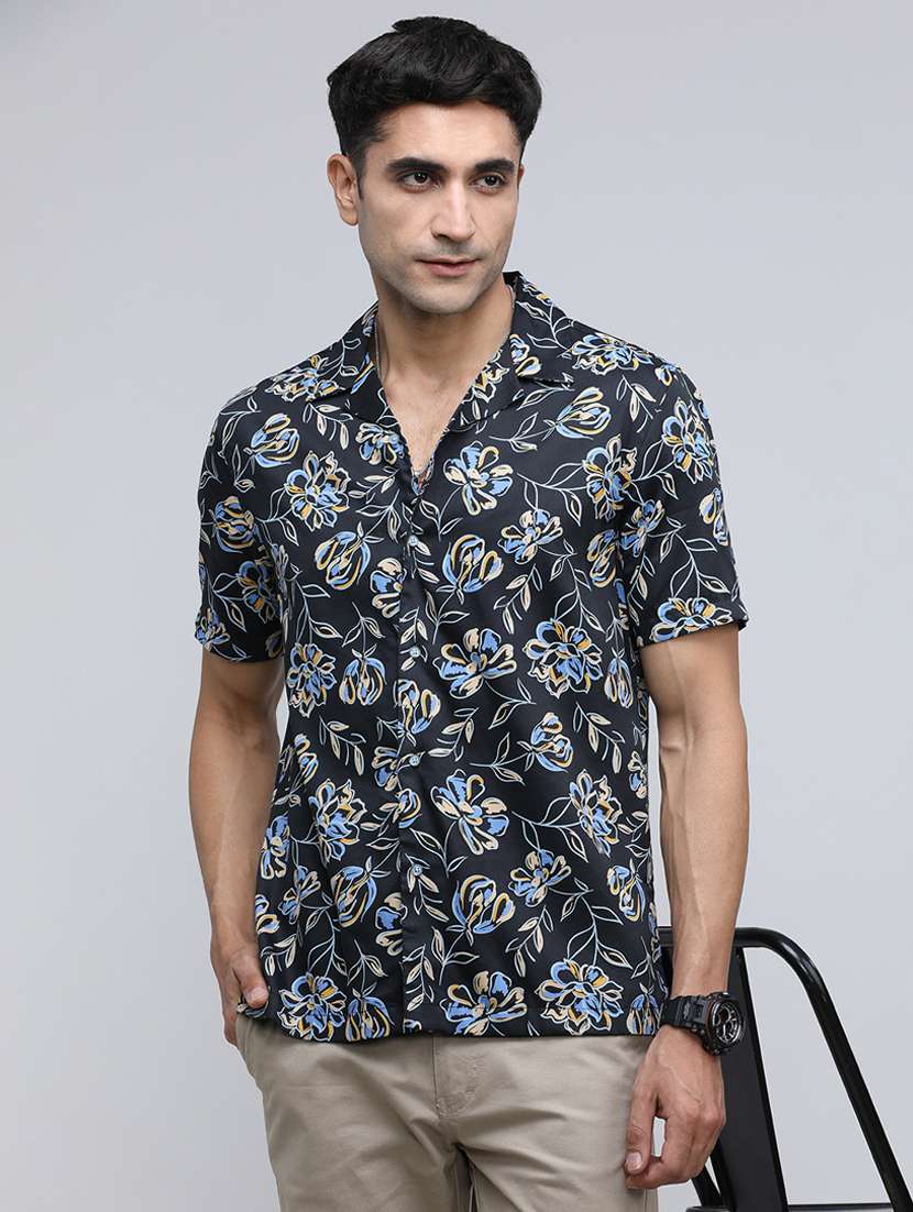 men floral short sleeve regular fit casual shirt