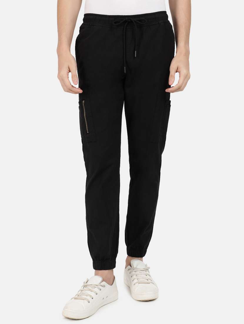 - » men mid rise solid cargos casual trouser
