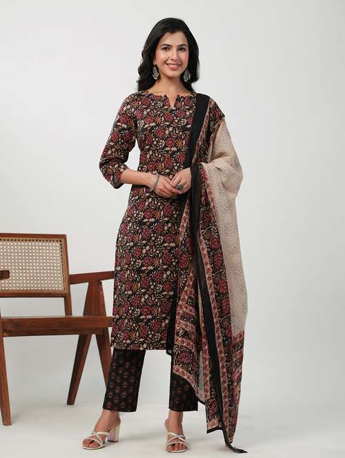 women three quarter sleeve kurta pant with dupatta set - 21513858 - Very Small Image - 1