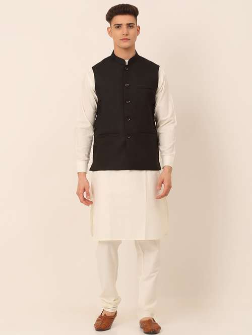 Men's Solid Kurta Pyjama With Nehru Jacket