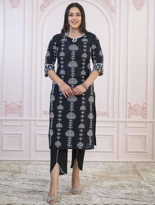 - Find gorgeous sets of ethnic wears in trending designs in black colors suitable for casual wear of occasions.