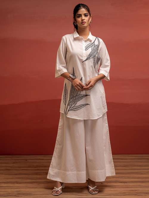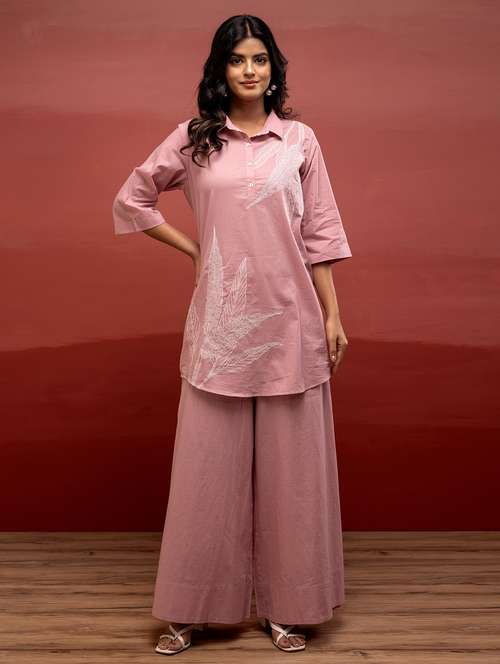 - » women solid with work three quarter sleeve relaxed fit ethnic co-ord set