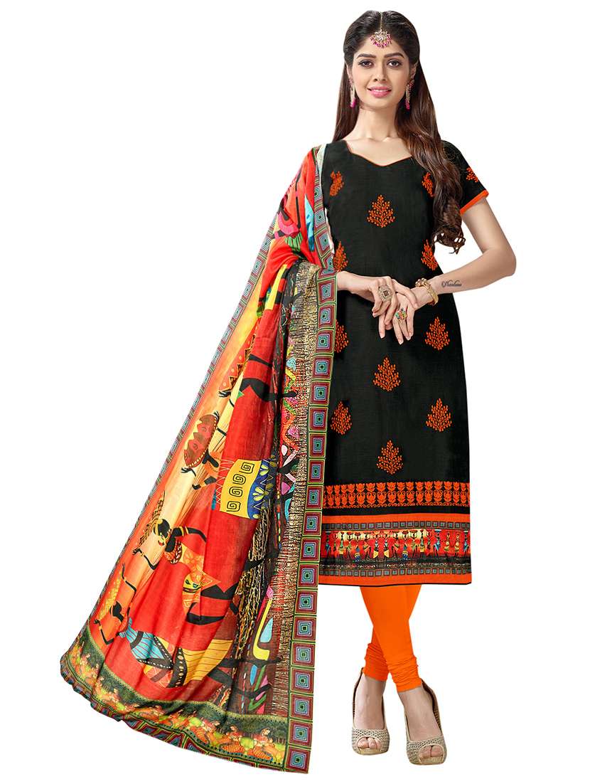 black cotton unstitched suit - 14890055 - Very Small Image - 1