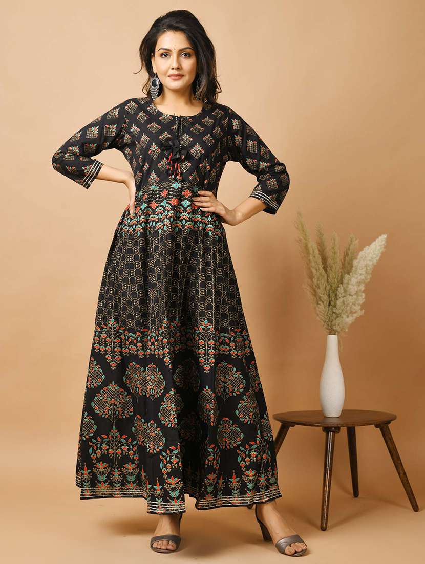 - » black cotton fit & flare ethnic dress