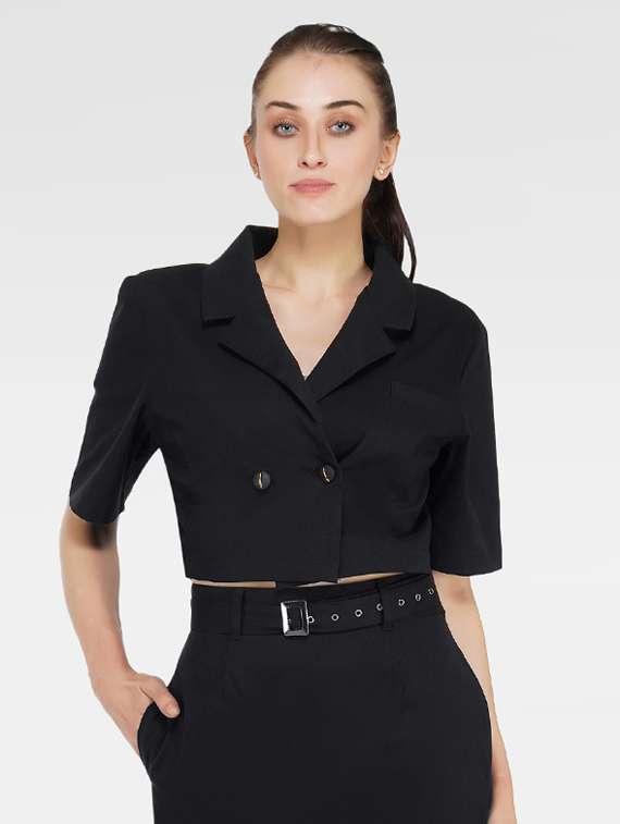 - » women's crop lapel neck top
