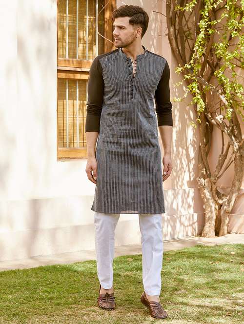 - » men self design mandarin neck long kurta