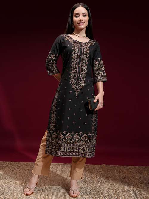- Grab this beautiful kurta made up of cotton fabric featuring round neck designs.