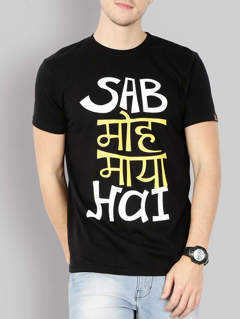 - » black cotton front print t-shirt