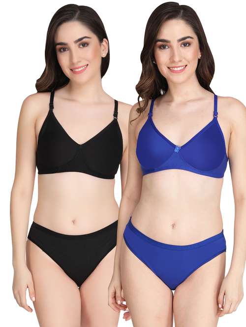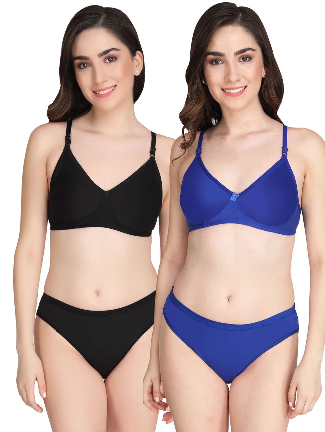 Liigne Women Everyday Padded Bra Panty Set (Pack Of 2) - This Lingerie Set Made of Pure Cotton