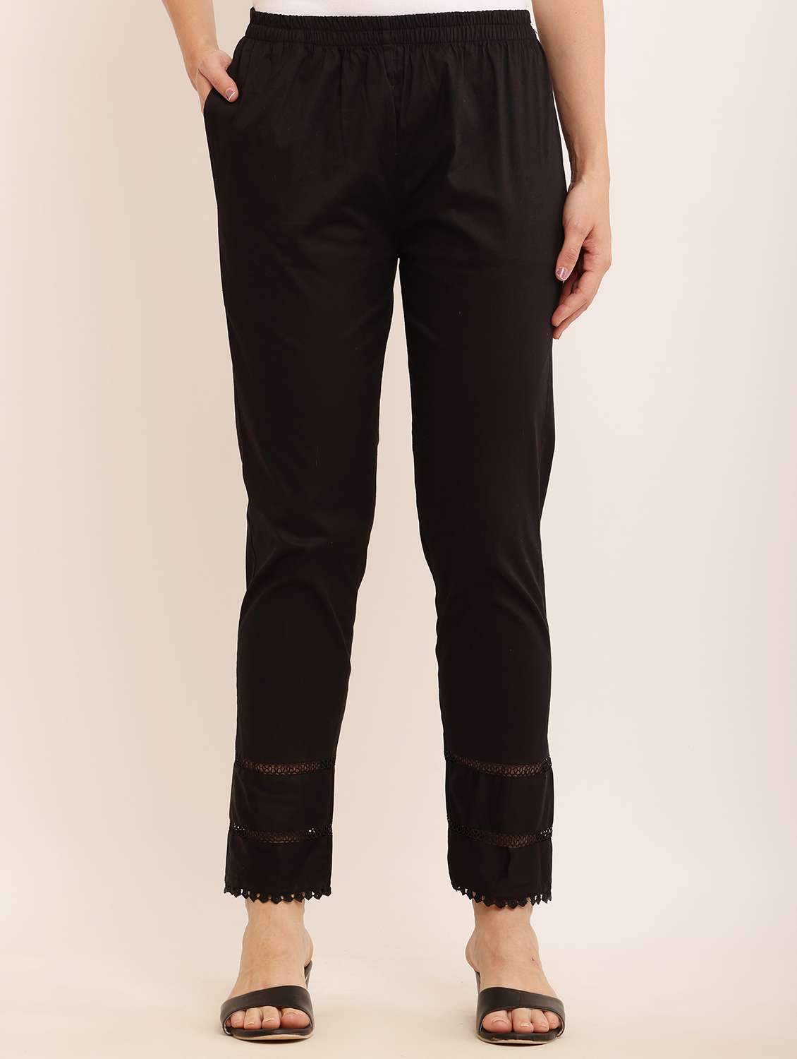 - » women black cotton lycra cigarette pant