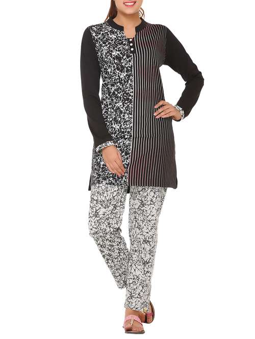 mandarin neck top with pajama set