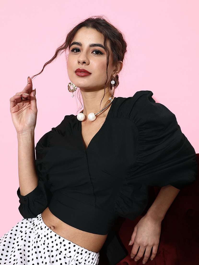 women's crop v neck top