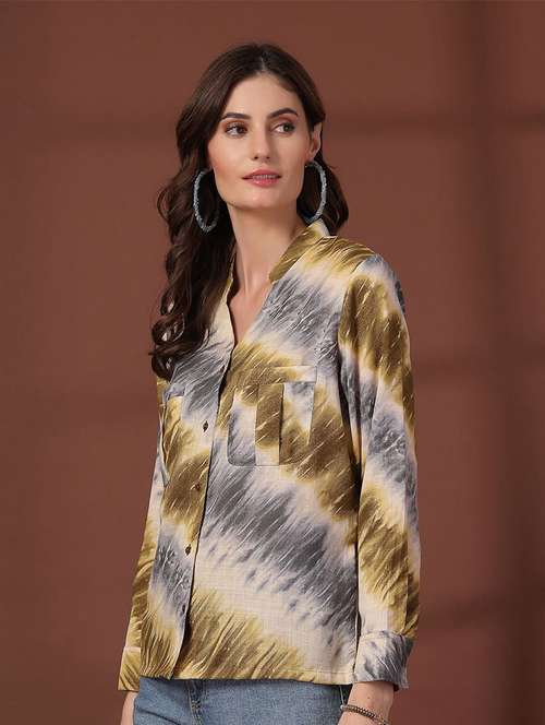 - » women printed mandarin neck western top