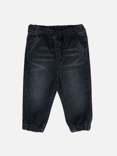 boys solid mid rise denim jogger