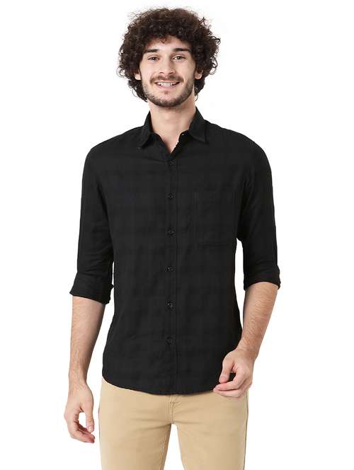 - Be a head turner by wearing this casual shirt from Mufti and grab it in black colour.