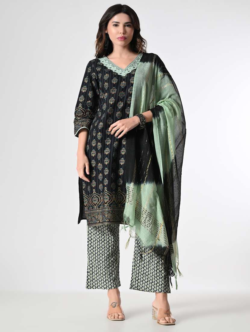 - Find gorgeous sets of ethnic wears in trending designs in black colors suitable for festive wear of occasions.
