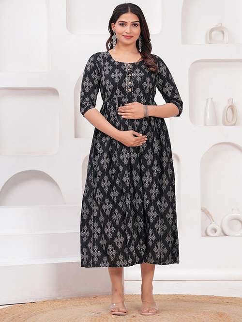 women printed three quarter sleeve maternity wear dress - 22218927 -  Standard Image - 0 women printed three quarter sleeve maternity wear dress - 22218927 -  Zoom Image - 0
