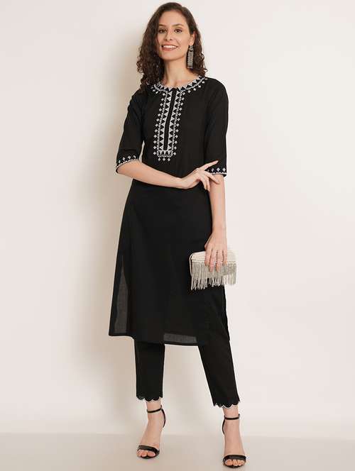 - Find gorgeous sets of ethnic wears in trending designs in black colors suitable for casual wear of occasions.