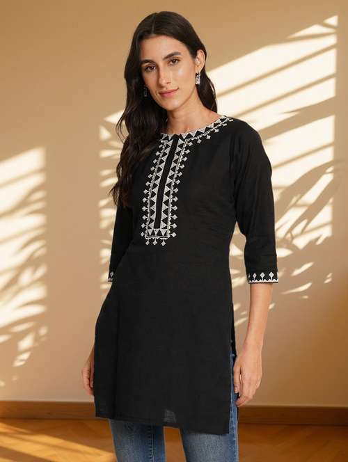 - » women embroidered three quarter sleeve straight kurti