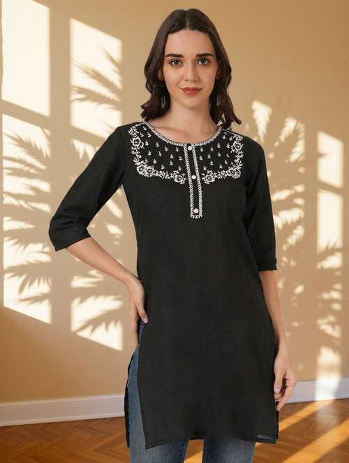 - » women embroidered three quarter sleeve straight kurti