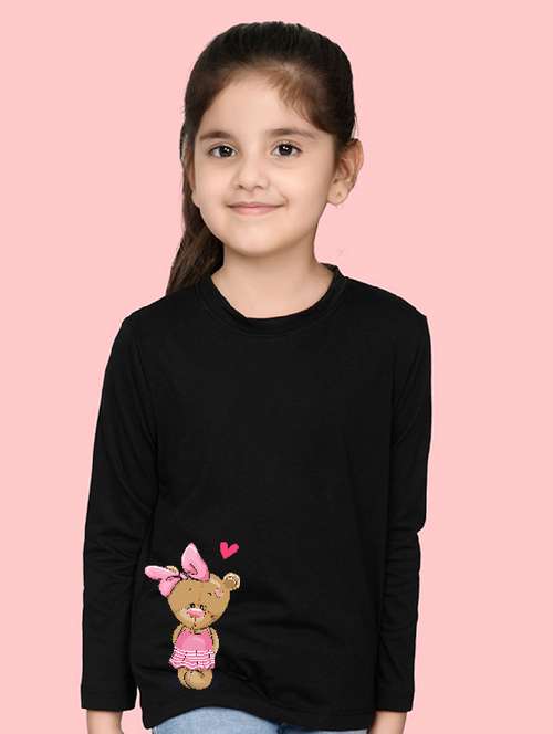 girls round neck placement print tees