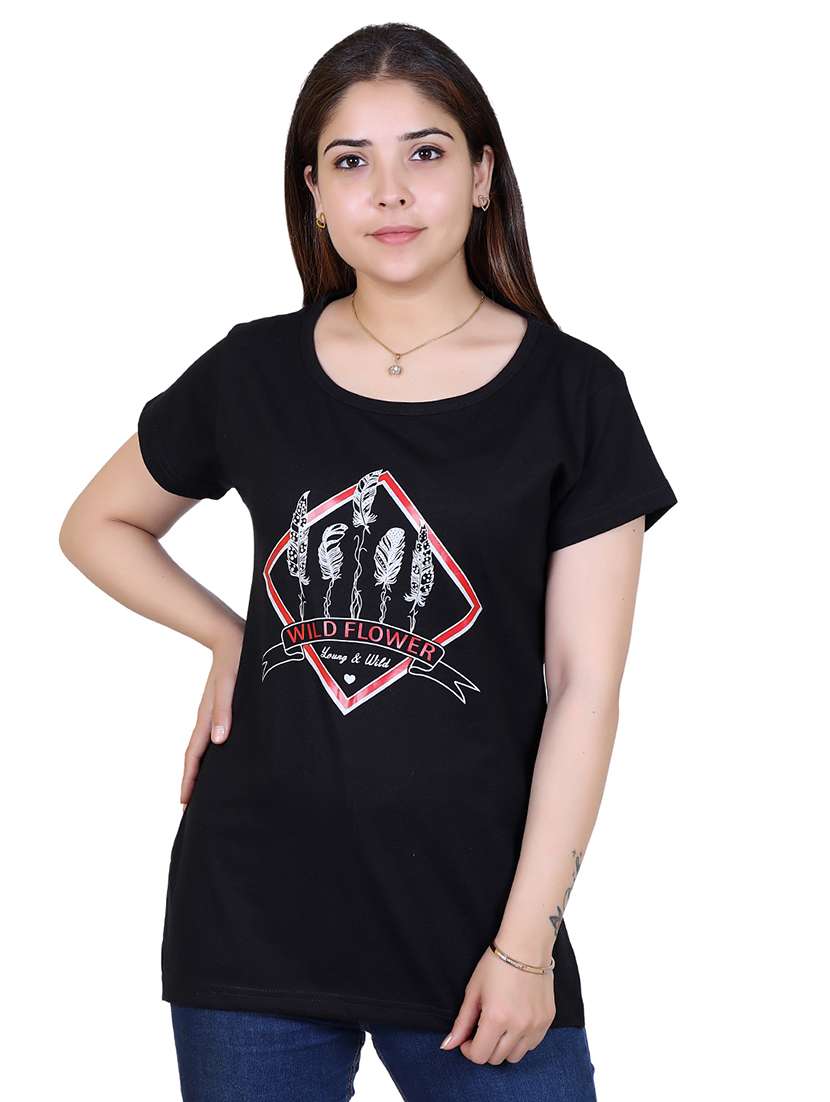 - » women's front print round neck t-shirt