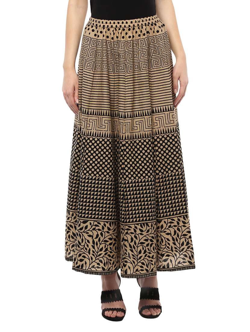 - » black & beige cotton printed skirt