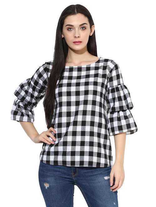 tiered bell sleeve checkered top