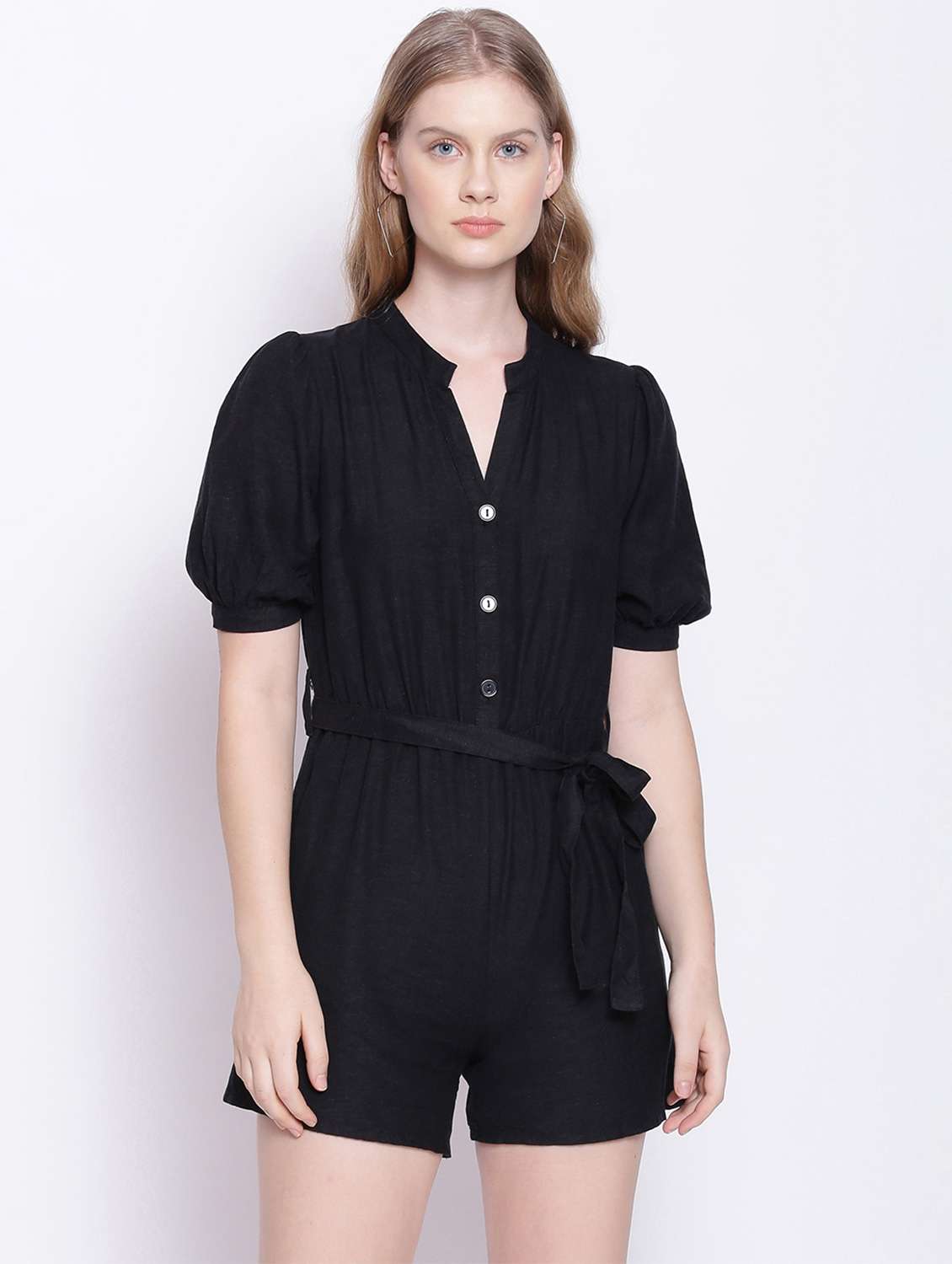 - » tie front solid romper