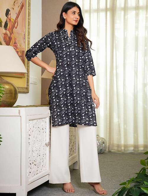 - Grab this beautiful kurta made up of cotton fabric featuring mandarin collar neck designs.