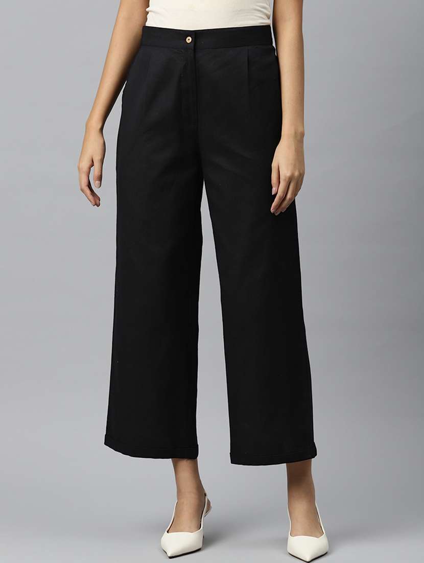 - » black solid flat front ankle length trouser