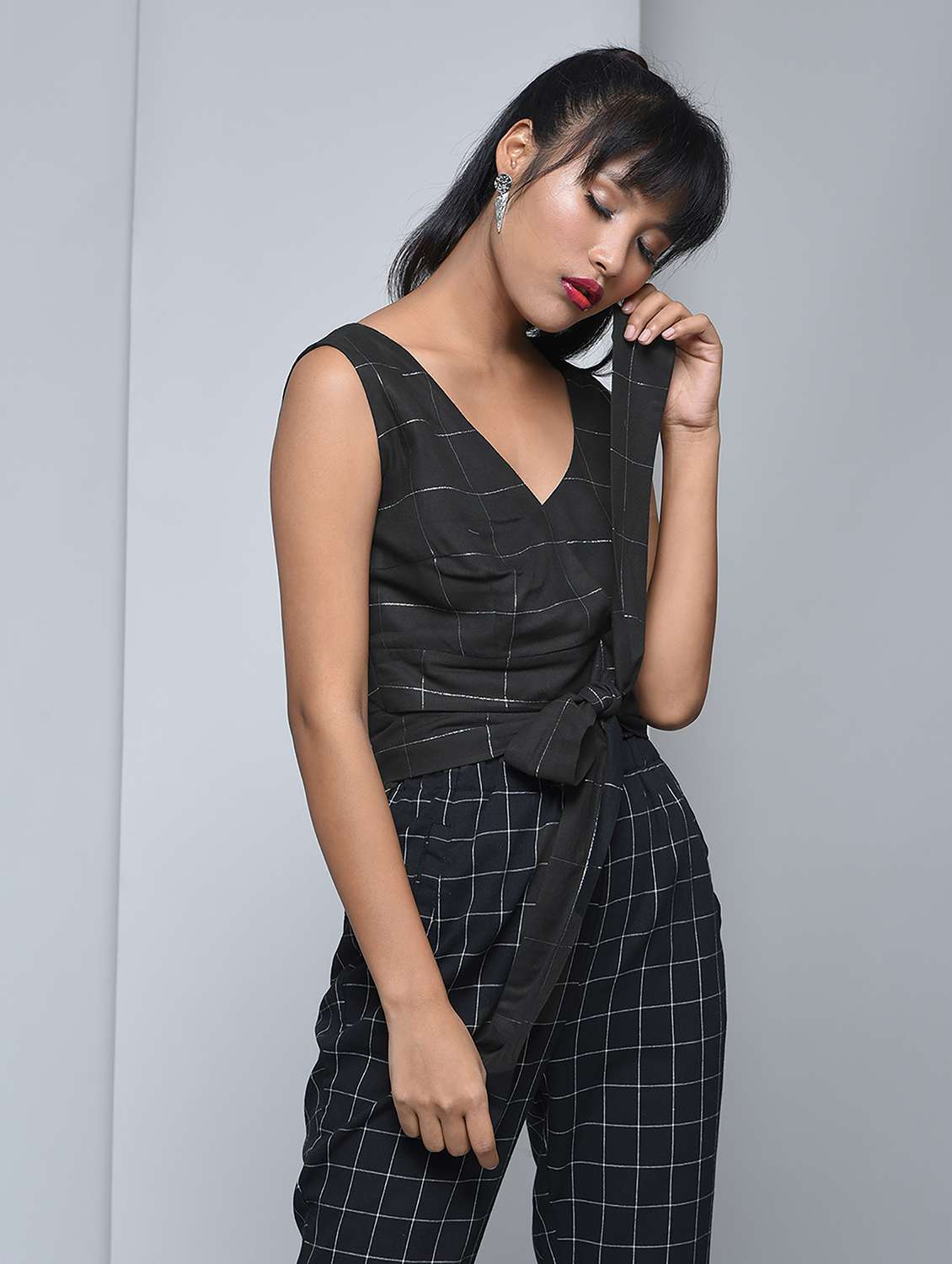 windowpane check crop top