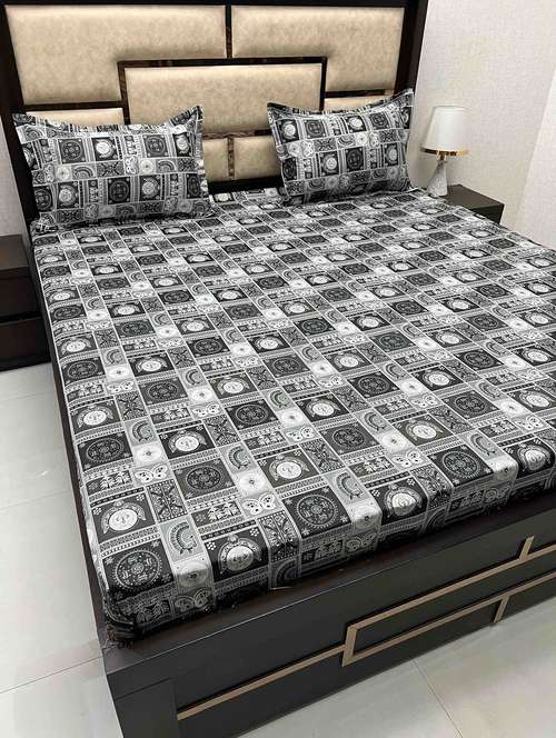 printed tc fitted king-sized bedsheet with 2 pillow coversv