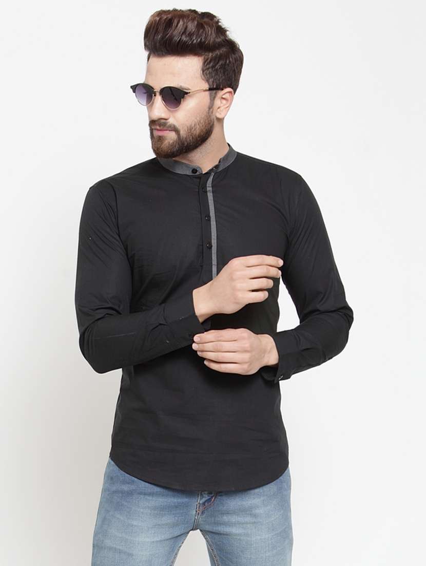 - » men solid mandrain neck short kurta