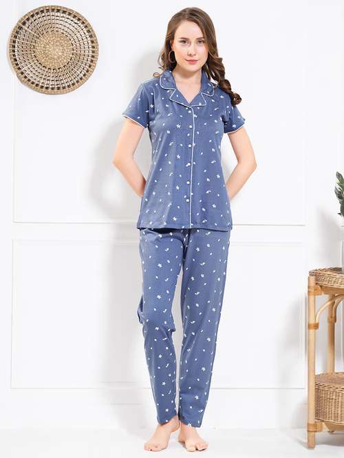 - After a long tiring day, slip into something homely, shop for the all-new collection of nightwear sets for ladies in S sizes and gorgeous blue designs and colors.