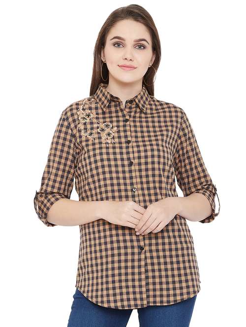 - » embroidered detail gingham checkered shirt