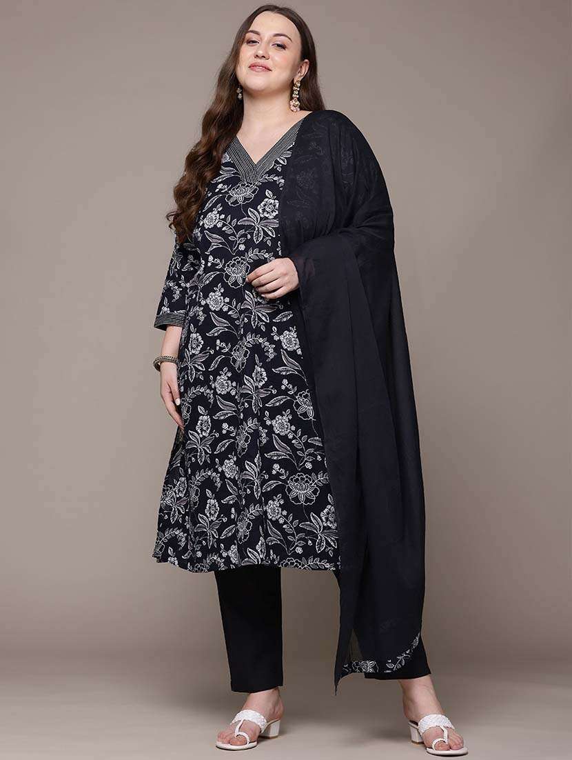 - Find gorgeous sets of ethnic wears in trending designs in black colors suitable for festive wear of occasions.