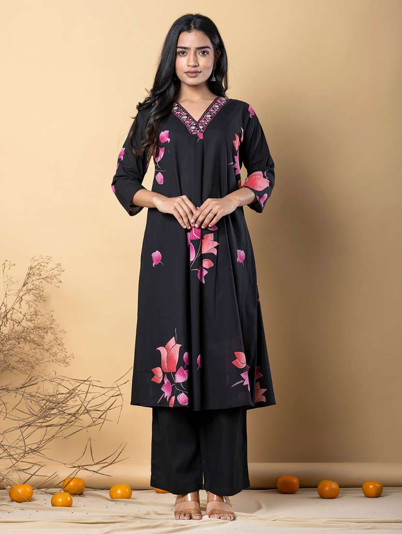 - Find gorgeous sets of ethnic wears in trending designs in black colors suitable for casual wear of occasions.