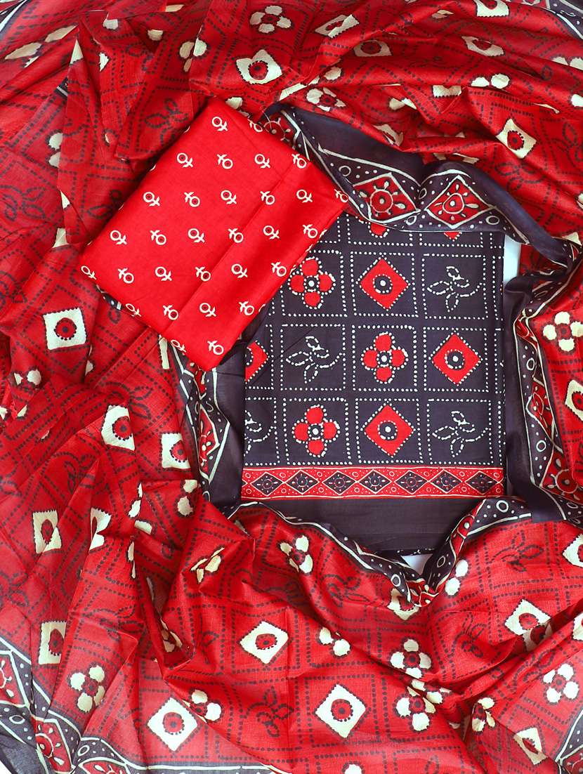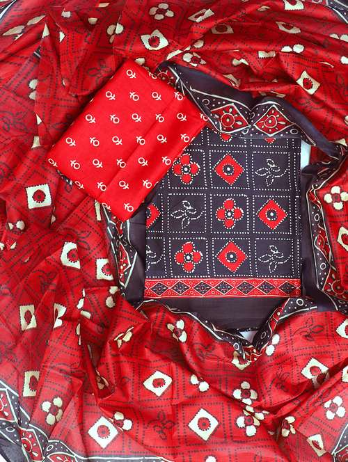women navy blue block printed unstitched suits - 20244365 - Very Small Image - 1