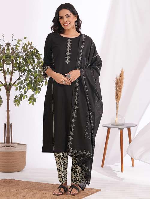 - Find gorgeous sets of ethnic wears in trending designs in black colors suitable for casual wear of occasions.