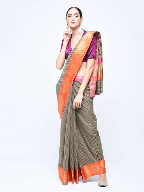 checkered handloom saree with blouse