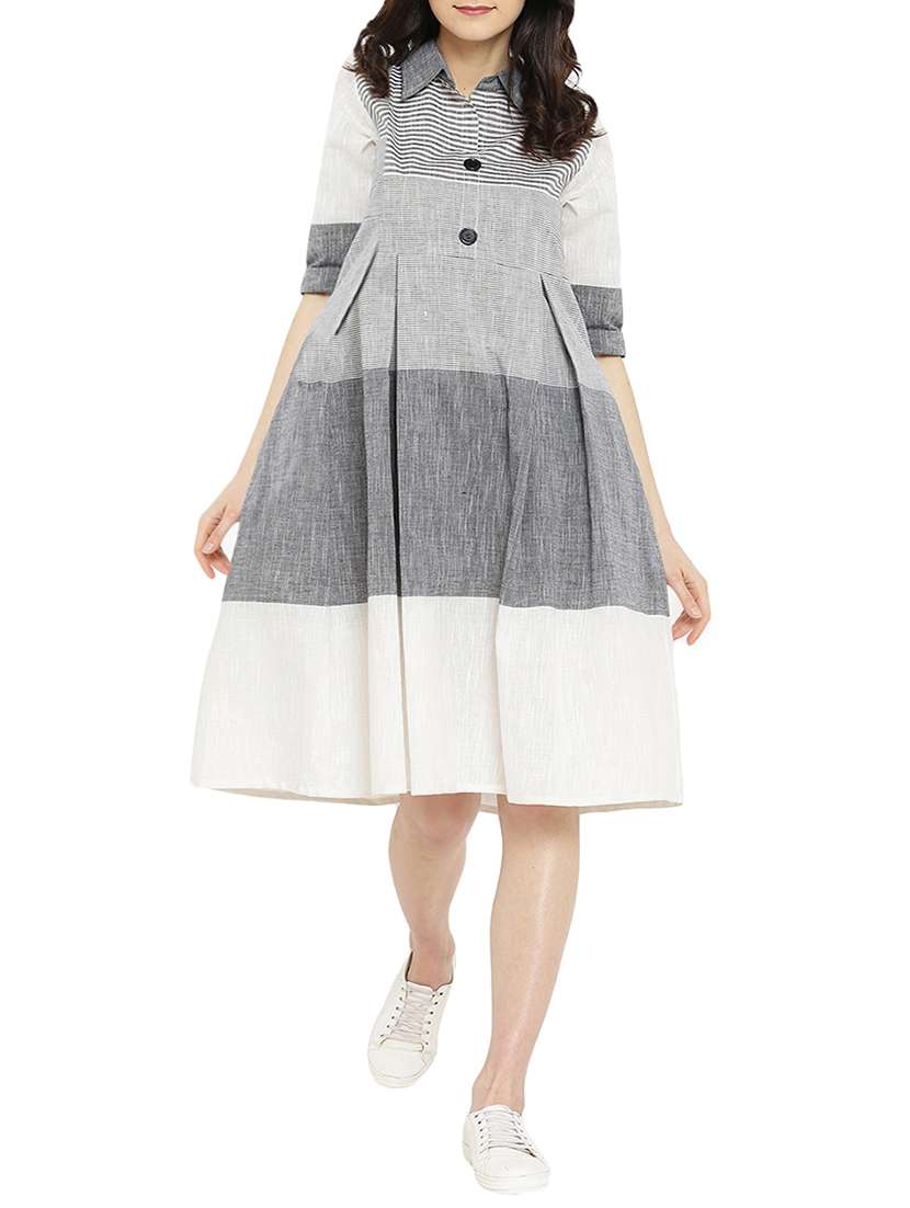- » shirt collar pleated a-line dress