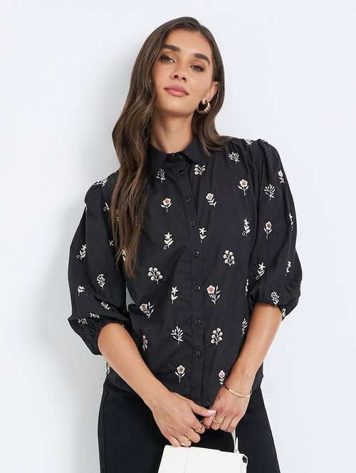 women embroidered collared puff sleeve shirt - 22397801 -  Standard Image - 1 women embroidered collared puff sleeve shirt - 22397801 -  Zoom Image - 1